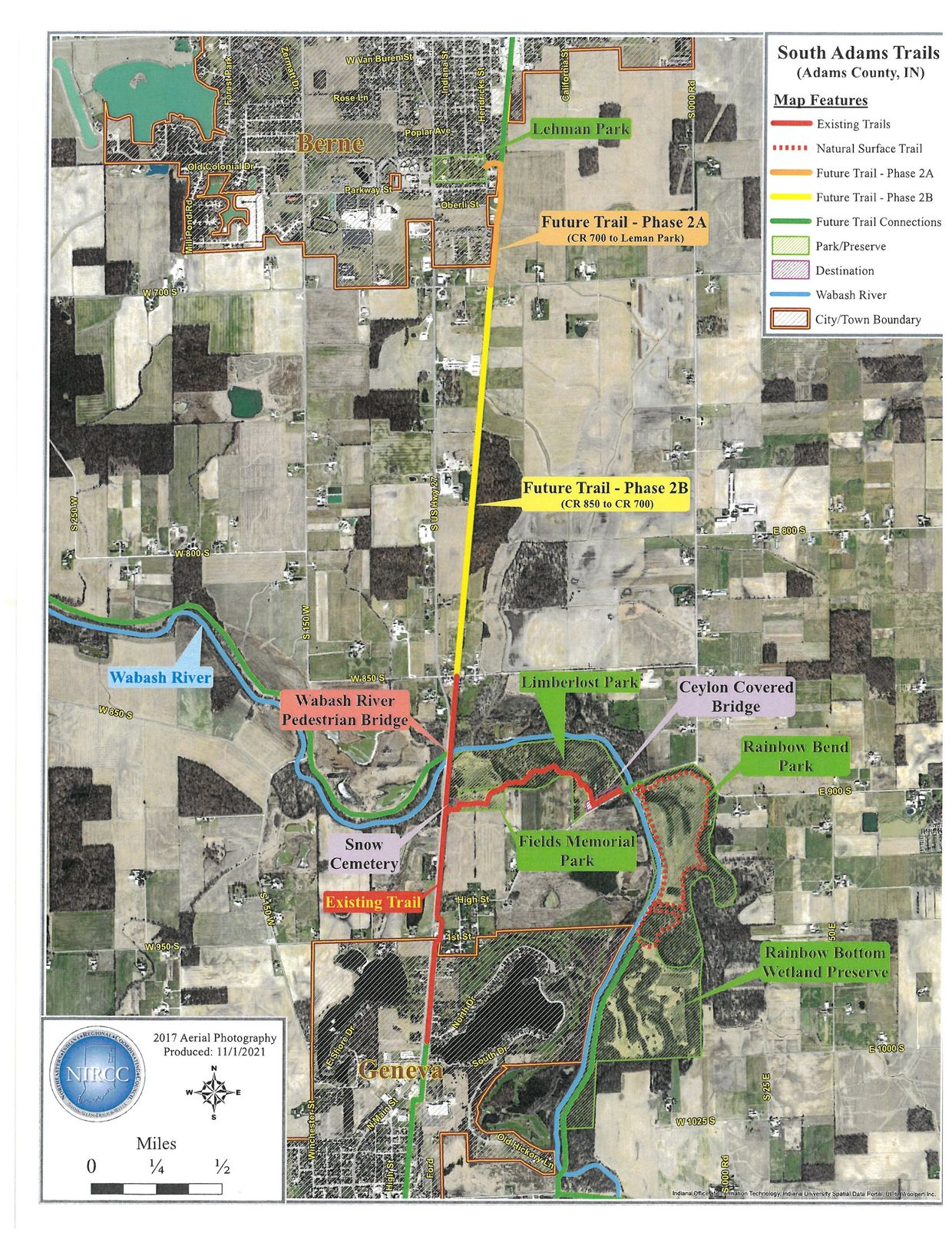 Our current project will link the City of Berne and Town of Geneva with an asphalt trail built on the old GR&I Railroad Right-of-Way, which we have spent the past few years acquiring. The trail also connects to the Ceylon Covered Bridge at Limberlost Park (and eventually to Rainbow Bend Wetland Preserve). This project is divided into four phases: